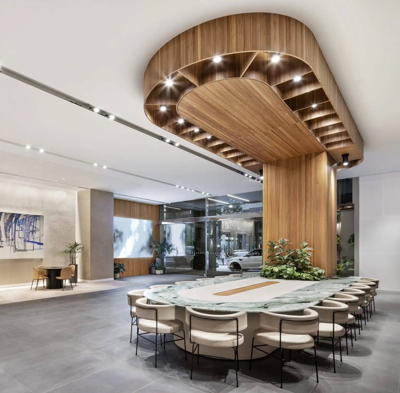 The project spanned four main areas of the building – the facade, rooftop, lobby and level 8. The works included the replacement of over 9,000sqm of flammable cladding, and the installation of a new entry canopy, all while the building remained operational. The 280sqm ground floor was upgraded to enhance the main entrance and lobby, incorporating the existing cafe into the street-facing space. In addition, Level 8 was upgraded into a spec suite with new amenities.
